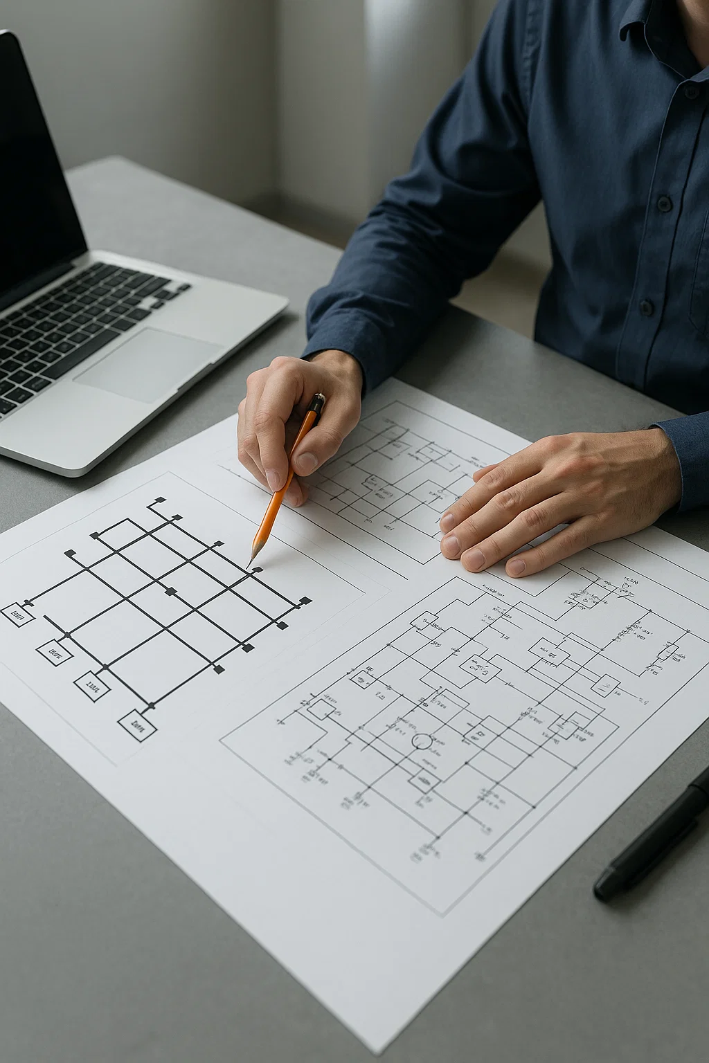 Orbistech, projeleriniz için kolon diyagramı tasarımı, prensip şemaları hazırlanması ve teknik danışmanlık konularında kapsamlı destek sunar. Doğru, standartlara uygun ve geleceğe dönük tasarımlarımızla projelerinizin her aşamasında güvenilir bir altyapı oluşturuyoruz.