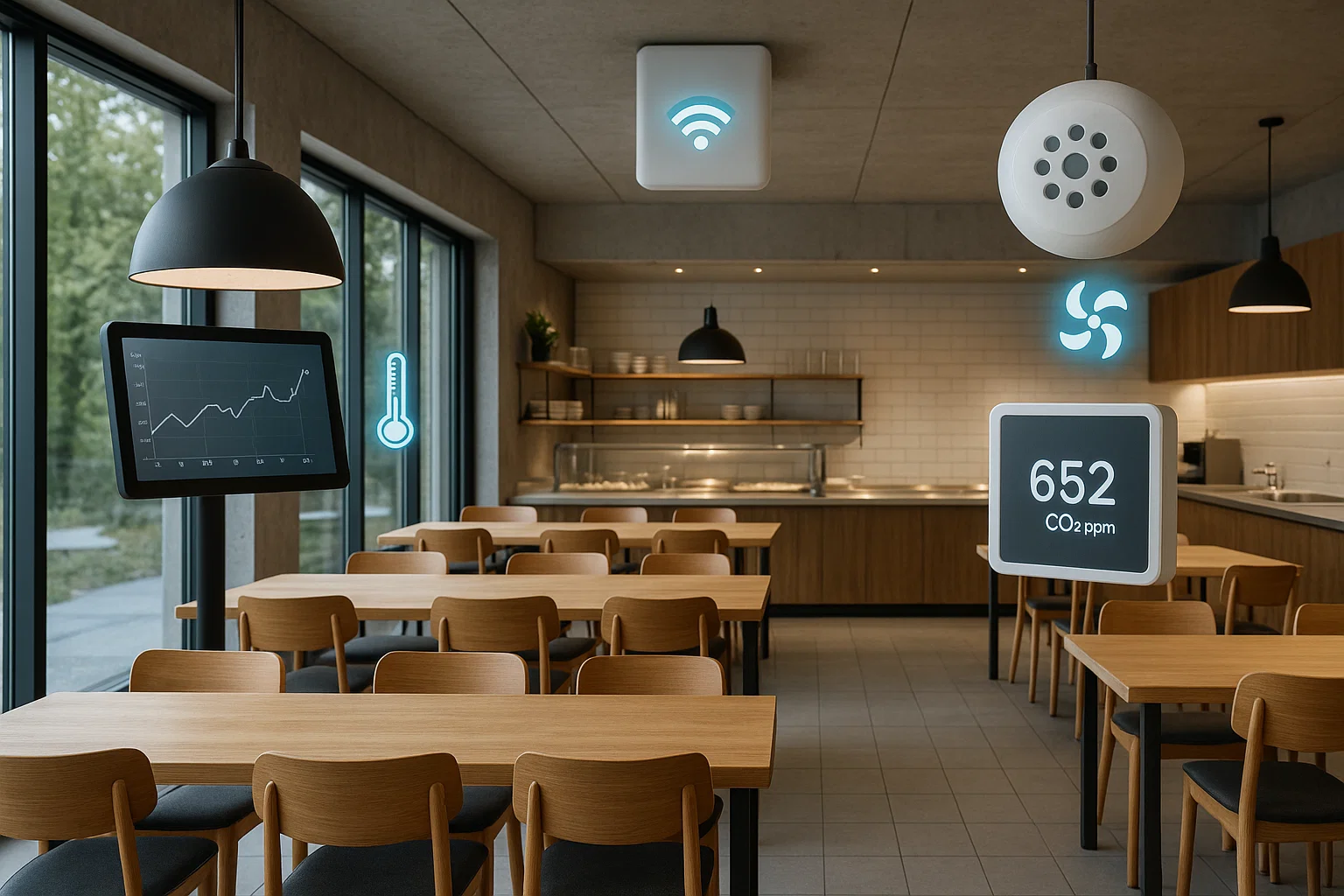 Bu yapı, farklı alanlardaki sıcaklık, nem, toz (PM2.5), CO₂ gibi parametreleri gerçek zamanlı olarak ölçer. Toplanan veriler, RS-485 Modbus RTU protokolü üzerinden merkezi kontrol ünitesine iletilir. Burada veriler analiz edilerek, önceden tanımlanmış eşik değerlerine göre otomatik senaryolar devreye girer.