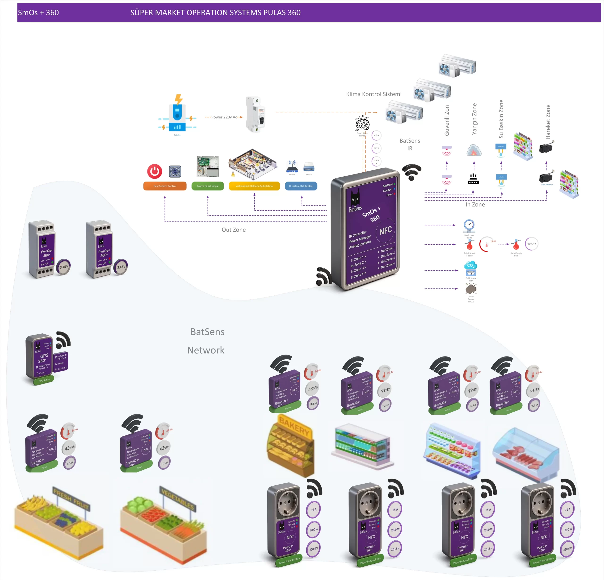 Supermarket Operation Systems (SmOs + PULAS 360) entegrasyonu ile sistem, mağaza genelinde aydınlatmadan soğutmaya, güvenlikten enerji optimizasyonuna kadar her süreci tek merkezden yönetebilir.