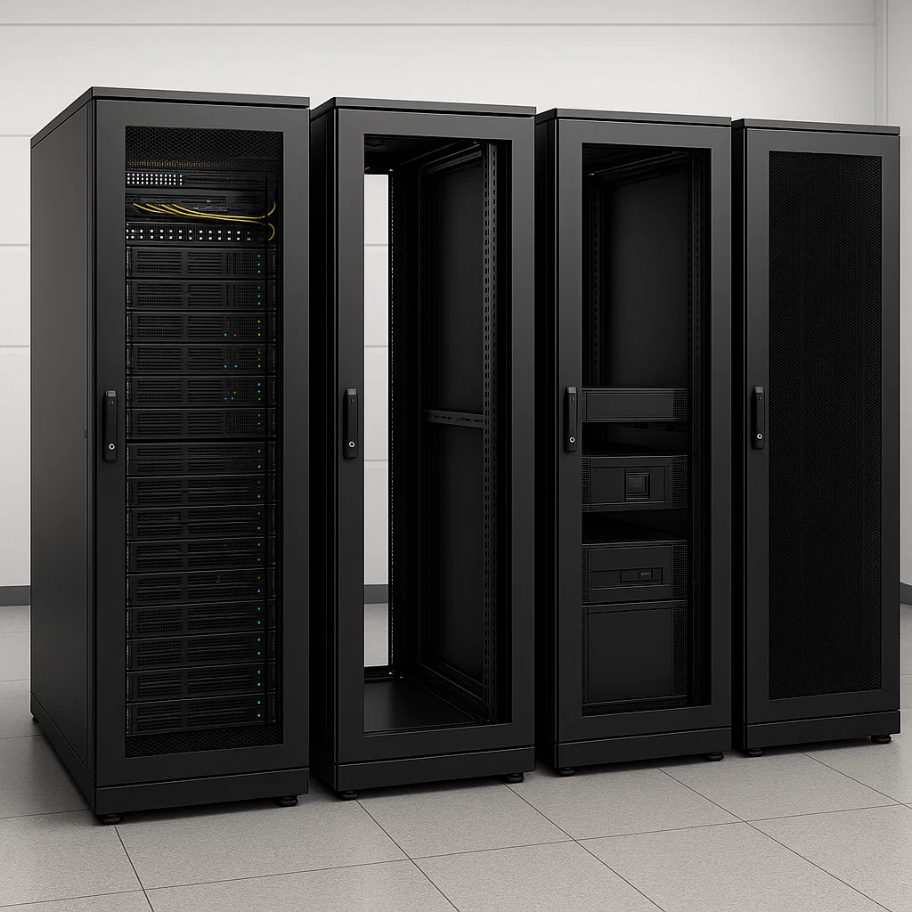 Uluslararası standartlara uygun 19” rack kabinler, switch, router, patch panel, sunucu ve güvenlik cihazlarının güvenle monte edilmesini sağlar. Duvar tipi, dikili tip ve yüksek kapasiteli veri merkezi kabin seçenekleri ile her ölçekteki yapıya uygun tasarımlar sunulur. Sağlam çelik gövde yapısı, yük taşıma kapasitesi ve modüler aksesuar seçenekleri ile esnek kullanım imkânı sağlar.